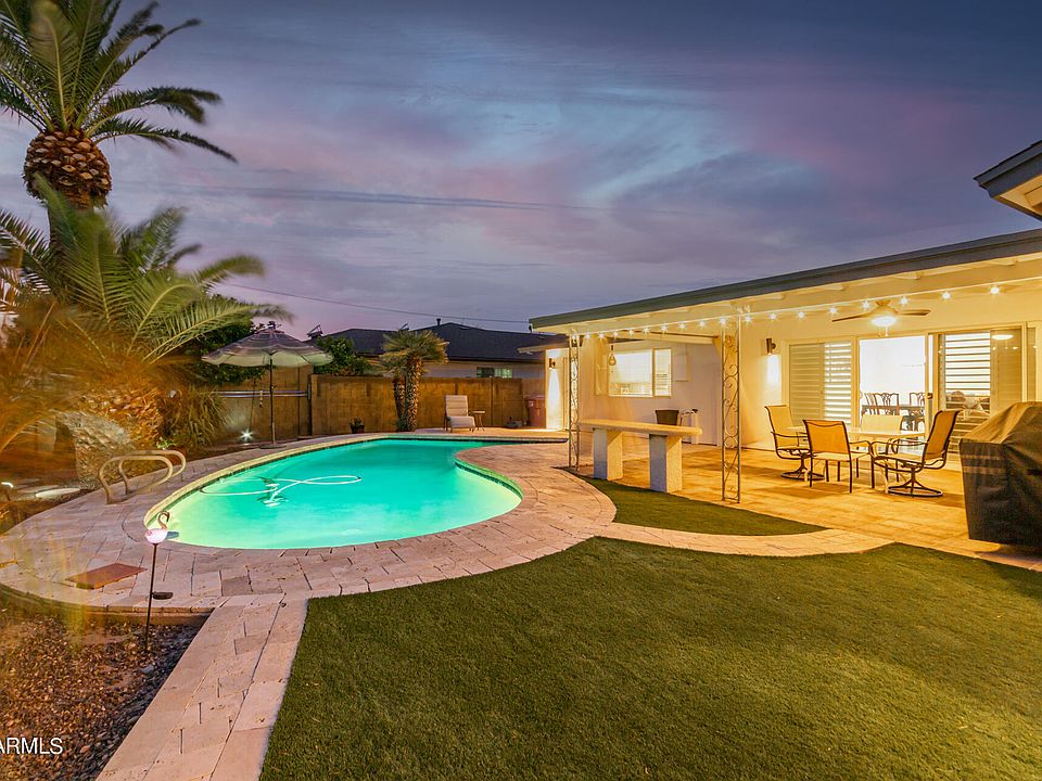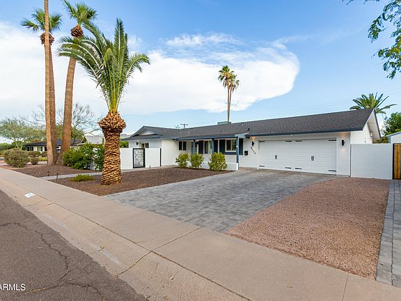 Nestled among $1M homes and minutes from Old Towne, Fashion Square, ASU and Sky Harbor! Now priced below Neighborhood comps! As you step into the home the Mid-Century Modern styling and pride of ownership shines through. The perfect home for hosting with a fully updated kitchen including a gas range and convection oven and a secondary electric oven and additional full sized refrigerator. 3 bedrooms and a fully equipped office give you flexibility to work from home. 2 of the 3 bedrooms come with en suite bathrooms, one of which has its own courtyard! Resort style living in the backyard! Enjoy the pebbletec pool, jacuzzi under gazebo, artificial grass and travertine pavers. Plenty of privacy and large covered patio will allow you to enjoy the backyard all year round. Hot water heater, pool pump and dishwasher 2 years or newer. Also featuring quartz countertop and SS appliances. There is a Reverse Osmosis system for drinking water and the ice maker. Situated on a cul-de-sac results in little traffic and a quiet street. This brick built home is energy efficient and the average electric bill in 2023 was $180/month.