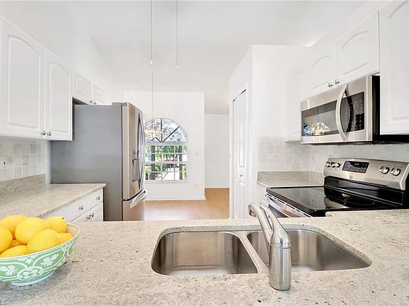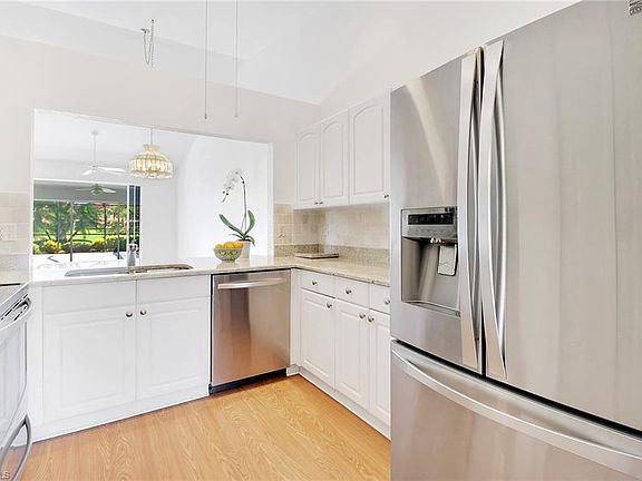 AFFORDABLE LIVING in one of Naples premier resort communities, LELY RESORT! Annual dues ONLY $600! This golf and lake view attached villa had a NEW roof and NEW screen enclosure over the huge patio installed in 2018. The covered lanai has an electric shutter for privacy and weather protection. This comfortable villa also has a beautiful updated kitchen with stainless steel appliances and granite counters plus laminate floors throughout all living areas and bedrooms. The AC was installed in 2014 and water heater in 2015. You can enjoy golf on two public golf courses, walk to Sam Sneads Grill and take a short drive to Publix, Fresh Market, Starbucks, Carrabas, Roadhouse Grill, Outback and several other restaurants and shops. Fabulous 5th Avenue, 3rd Street and the beautiful Naples beaches are less than 10 miles from Lely Resort as is Marco Island. For those seeking the ultimate resort lifestyle The Players Club and Spa membership is available with a resort pools, a competitive Tennis Center with 13 courts, pickle ball and bocce, attended fitness center, a full service spa plus the friendliest Tiki Bar in town! Vacation year round with the fabulous Lely lifestyle!