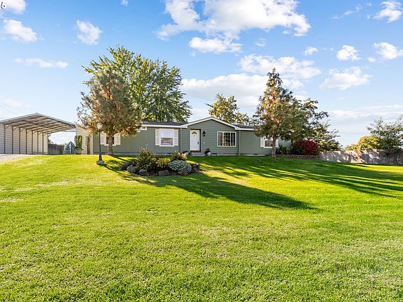 Well-cared-for and move-in ready, this 1,782 sq ft, 3 bedroom, 2 bath home sits on a private and fully fenced .82-acre lot with .7 acres of water rights through Hermiston Irrigation District—ideal for those seeking space, privacy, and the functionality of irrigated land in a rural setting. Inside, the home features two spacious living areas and LVP flooring throughout most of the home, with minimal carpet, making it both comfortable and low-maintenance.The exterior has been freshly painted, boosting curb appeal and showcasing the pride of ownership found throughout the property. The layout is well-designed with generous living space, great natural light, and flexibility to suit a variety of needs—whether it's entertaining guests, working from home, or relaxing with family.Outside, the .82-acre lot is landscaped with established trees and open space, offering a peaceful outdoor environment. Underground sprinklers cover most of the yard, with the bulk on timers for easy management. With .7 acres of water rights through Hermiston Irrigation District, you have everything needed to support lush landscaping, gardens, or even hobby livestock.An oversized carport with a concrete floor provides covered parking and additional storage or workshop potential. The property is fully fenced, offering safety and privacy for animals, kids, or outdoor projects.Located in a quiet and more remote area, this property offers the freedom and serenity of country living—an excellent opportunity for buyers looking to enjoy open space and self-sufficiency without the close-in hustle of town.