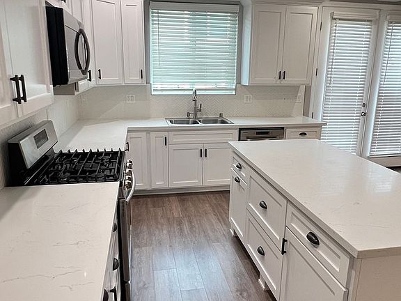 -Large remodeled kitchen with quartz countertops and stainless steel appliances (stove, microwave, and dishwasher)