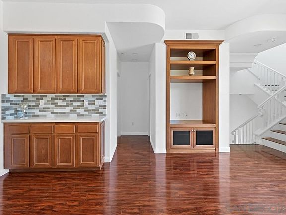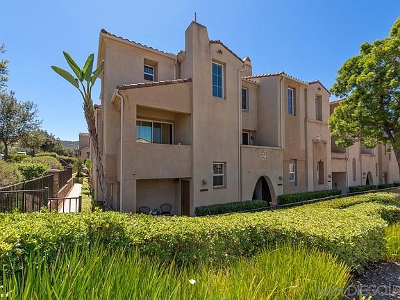 Light, bright townhouse in gated CorteBella in Coronado Ranch. Move-in ready with new paint throughout. 9' ceilings. Updated kitchen includes new quartz countertops, designer backsplash and new stainless appliances. Two-car attached garage has extra storage. Walking distance to Cal State San Marcos, shopping and restaurants with easy freeway access. Palomar College is also nearby. Close to San Elijo Hills with good access to Carlsbad, I-5 and the beach! Nice breezes and views of the hills nearby.