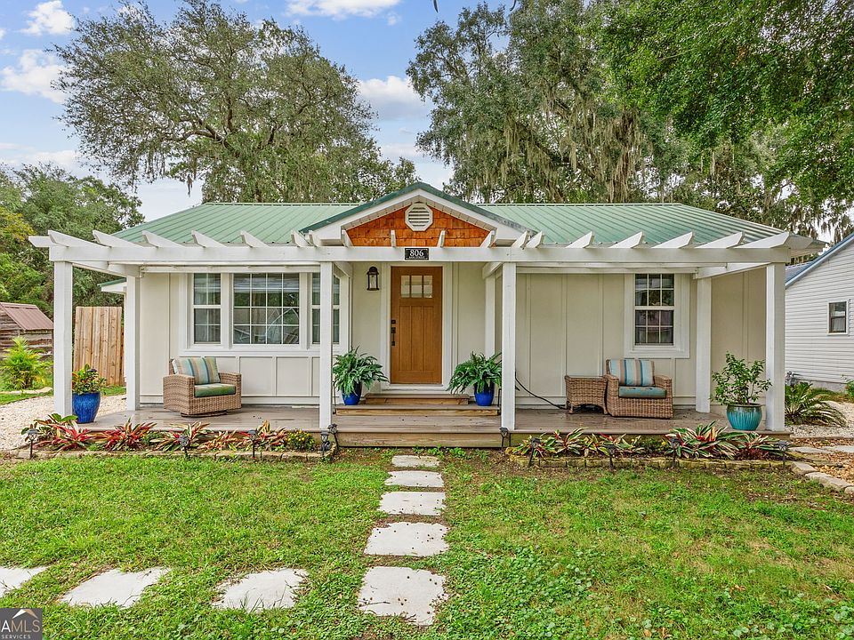 Beautifully renovated and golf cart accessible, this home blends modern updates with classic charm. The remodeled kitchen features custom cabinets, granite countertops, high-end appliances, and a large island. Bathrooms are fully restored with new plumbing, tile, and vanities, while the laundry room includes a brand-new washer and dryer (included). Enjoy outdoor living in the screened pavilion kitchen with granite counters, ceiling fans, running water, and a dishwasher, perfect for entertaining friends on game day! Additional highlights include a two-car garage, double-wide carport, air-conditioned workshop/man cave, refinished hardwood floors, new Hardie board siding, metal roofing, energy-efficient doors, and professional exterior lighting. Last but least this home includes adjacent lot with a combined .50 acre of landscaped grounds make this move-in-ready home perfect for entertaining and everyday living. Come see all that Downtown St. Marys has to offer!