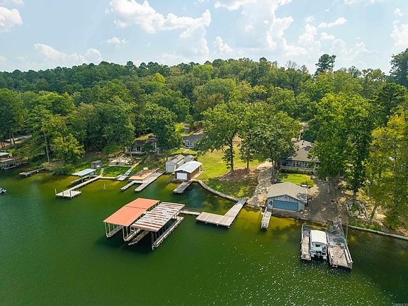Lake lot on Lake Hamilton ready for your new home. .58 acre with 107 feet on the lake. Launching ramp, swim dock & two stall covered boat dock, concrete seawall all permitted. Most of the lot is above flood plain giving plenty of room for a home & gentle walk to the lake. City water meter & electrical meter pole in place. Pressure city sewer at the street. Located a short drive from Garvin Woodland Gardens. Survey on file. 16X35 ft. shop with roll up door that opens to a launching ramp into lake. 11X7 shop door. 8X32 pier adjacent to shop. 32 ft long pier out to 12X24 swim platform. Both boat stalls are 9'8" wide X 34 long X 9'6" high. Winter water with water depth in stalls at 9+ feet. Entergy permitting info on file.