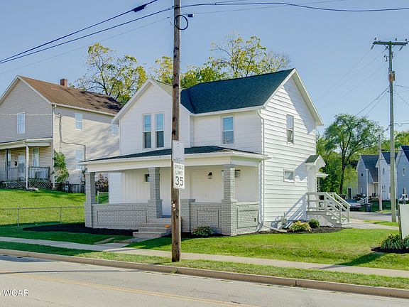 Versatile commercial or residential opportunity! The main level offers a welcoming foyer, a large open office or retail area, two private offices, a kitchenette/breakroom with sink and countertop, and a full bathroom with a tub, tile surround, and touch-light mirror. Laminate flooring throughout the main with carpet in the primary office space. Upstairs has its own private access, a kitchen with gas stove hookup, a full bath, and two rooms that can serve as bedrooms or a bedroom/living combo. Plumbing has been replaced throughout. Newer natural gas furnace (2023) and central air (2022) provide efficiency and comfort. Covered front and back porches, three blacktopped parking spaces, and excellent visibility on Bellefontaine Ave. Perfect setup for business downstairs and living space upstairs—or make it a duplex and get rental cashflow. Convenient location near downtown Lima. Sellers are motivated! Some photos are virtually staged. This is also listed as a commercial property as well.