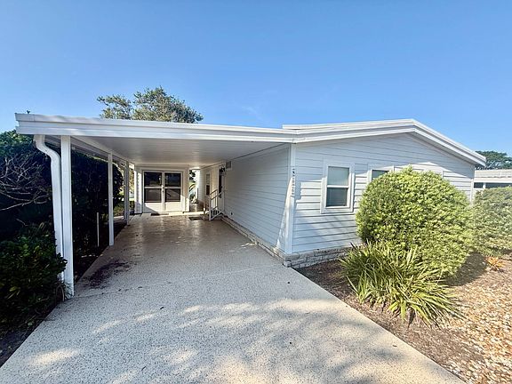 Home is located in Water Oak Country Club Estates in Lady Lake Florida, an active 55 plus resort style land lease community. Nicely updated home with stunning views. Exterior siding was replaced with hardi board siding and freshly painted. Newer double pane windows throughout. AC has been regularly serviced. Metal roof. Driveway and carport provide ample parking and the driveway has recently been re surfaced. The large utility shed has double doors for golf cart storage and houses your washer and dryer, which convey with the sale. Enjoy Florida's spectacular sunsets from either your enclosed lanai or the attached screened in lanai. Drop a line in the water for some catch and release fishing, right from your back yard. Centrally located in the community, minutes from either resident gates and the resort style amenities. large windows provide plenty of natural light, making this home bright and cheerful. Nice LVP flooring and ceramic tile throughout. Home is being sold partially furnished. The eat in, pass through kitchen is spacious and has plenty of cabinet and cupboard space. Nice dining area opens up to the comfortable living room, and has attractive built in's. The interior walls have been resurfaced and freshly painted and both bathrooms have been remodeled. The guest bedroom has an ample sized closet and your guests will enjoy a full guest bathroom with walk in shower with etched glass doors. The primary bedroom is large and has a large walk in closet. The updated en suite has double sinks, beautiful lighting and wall features. The updated walk in shower has etched glass doors as well. The vapor barrier insulation under the home was replaced 2 years ago. Come tour this beautiful, clean, updated home with stunning views of the lake and golf course. This is a home to be proud of! Water Oak is a premier active 55+ land lease community in Central Florida. A peaceful community with rolling hills, historic trees, and a newly renovated 18-hole championship golf course. Enjoy a gated community that mows your lawn as you live a resort lifestyle with two beautiful clubhouses, heated pools, a sports center, a restaurant, and a variety of clubs and activities. Call to see this home today!