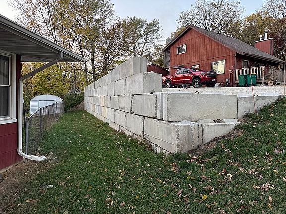 The oversized, detached 2-car garage is heated making it ideal for projects during cold weather. The new retaining wall added in 2024 substantially enlarged the area for parking.
