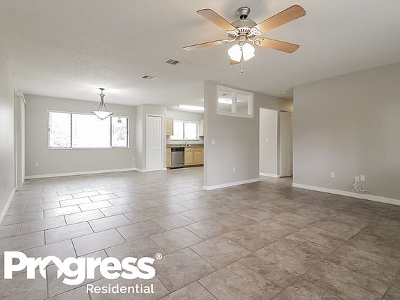 Please note, our homes are available on a first-come, first-serve basis and are not reserved until the lease is signed by all applicants and security deposits are collected. This home features Progress Smart Home - Progress Residential's smart home app, which allows you to control the home securely from any of your devices. Apply to lease this home by September 15, 2024 and receive $1500 off your first full months rent. Want to tour on your own? This move-in-ready rental home in Palm Bay, FL is waiting for you with three bedrooms and two bathrooms. Enter the living room to find an expansive open floor plan in the living room. Natural light from multiple windows fills the space. Neutral tile flooring and dove-gray walls flow throughout the living areas for a cohesive look. Set up your dining table below the hanging light fixture. Sliding glass doors from this dining area open to a versatile screened-in patio outside. You'll find plenty of storage in the kitchen's abundant cabinetry and dedicated pantry. In the main bedroom, stay comfortable under the ceiling fan, and start your day in the private en suite bathroom which has a shower with a tile surround. Apply for a tour today!