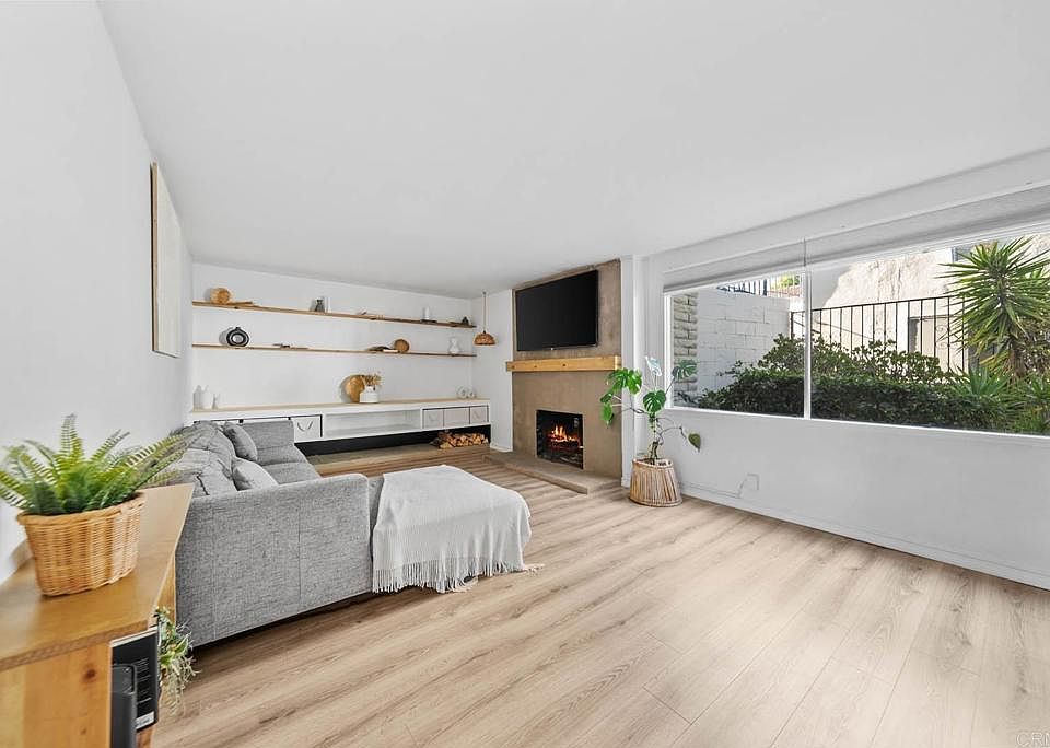 Welcome to this charming VA-approved 1-bedroom, 1-bath condo located in a gated Escondido community! This home features central A/C, a wood-burning fireplace, and a private patio with beautiful views. The sellers have added thoughtful updates throughout, including new hardwood flooring, fresh interior paint, a concrete accent wall in the kitchen and fireplace, new mesh screen door, updated kitchen cabinet hardware, new bathroom vanity and sink, new garbage disposal, and added shelving and storage in the living room. The balcony has also been enhanced with a privacy wall, wood flooring, and decorative rock accents — perfect for relaxing outdoors. Enjoy a shared 1-car garage with tandem parking and additional storage, plus access to a community pool, laundry facilities, and secure gated entry. Located just minutes from North County Mall, local parks, and popular restaurants, this home is ideal for first-time buyers or anyone looking to downsize. Sellers are willing to leave the home fully furnished for the next buyer!