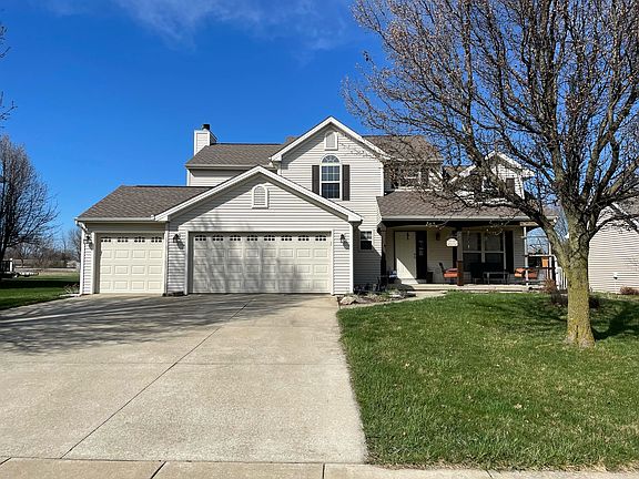 Sitting on a quiet street in peaceful Tolono with no backyard neighbors this 3 bedroom beauty is set to impress! The covered front porch invites you inside where you'll discover a stunning entry way complete with vaulted ceilings and open staircase. Boasting clean lines and neutral tones the bright and airy living room leads into a large dining area. The flowing layout continues into the spacious kitchen featuring beautiful cabinetry, center island and updated light fixtures. The bonus family room is highlighted by stunning wood flooring and a cozy brick fireplace. Upstairs hosts three guest bedrooms including the master suite complete with vaulted ceilings and private full bath with double vanity, separate soaking tub and walk-in closet. Need more? Take a look at the finished basement for even more living space plus a second half bath. Entertain with ease out on the large patio overlooking a huge fenced yard featuring a separate private patio area, large shed and above ground pool! Schedule your private showing today!