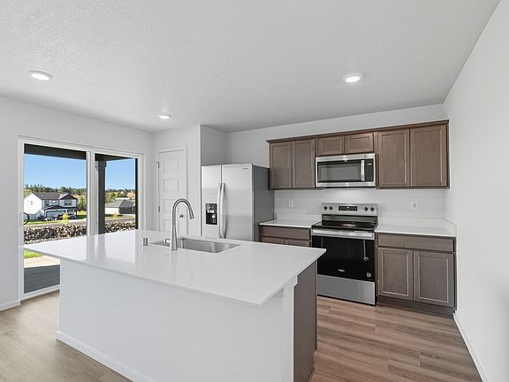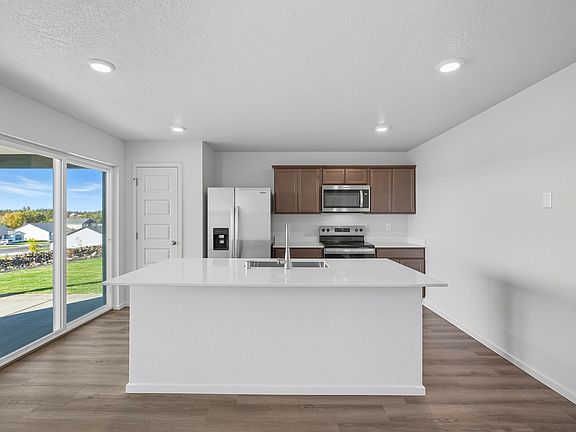 This cozy home offers three bedrooms, two bathrooms, and an open-concept living space spread across 1,466 square feet. The seamless layout connects the living room, dining area, and kitchen, creating a spacious environment perfect for gatherings and entertaining. The kitchen is equipped with stainless steel appliances, including a dishwasher, electric range, and microwave, and overlooks the expansive great room for easy interaction with guests. The primary bedroom, tucked at the rear of the home for added privacy, serves as a serene retreat with an ensuite bathroom and a walk-in closet. Two additional guest bedrooms are located at the front of the home and share a full bath, offering versatility and comfort. Enjoy RV Parking on the side of the house, and views of Deer Park sunsets right out your back door!