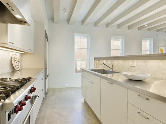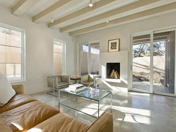 *** Contact Owner for a private showing @ 512-744-5368 *** Contemporary style architecture in Santa Fe. This "Territorial Modern" condo was designed by acclaimed architect, Trey Jordan. It is prominently located along Palace Avenue less than a mile from the Historic Plaza. All the wonderful qualities Trey is known for are here - sleek, clean lines which exude strength, simplicity and stillness. Exceptional quality and upscale finishes. Over sized great room with a natural flow between kitchen, dining and entertaining areas. High beamed ceilings with east facing windows allow for an abundance of natural light. Polished concrete floors, an unobtrusive color palette and an elegant wood-burning fireplace top off the main living space. Upscale kitchen with a Wolf Range, SubZero fridge and stainless counter tops make the perfect space for a modern cook to feel right at home. Two sets of sliding glass doors lead out to a newly constructed screened porch and walled garden area perfect to enjoy morning coffee or outdoor dinner. The main floor also has a study with private access to the garden. Upstairs, the master suite has a private terrace looking south toward the river, and a large marble bath with steam shower. NEWLY INSTALLED mini-split air conditioner in master suite. A guest room with en suite bath and a large laundry room complete the upper level. All of this hidden away from Palace Avenue through a landscaped entry courtyard, this like-new residence is private and peaceful everything you need to experience the contemporary lifestyle in Historic Santa Fe. *** Contact Owner for a private showing @ 512-744-5368 ***
