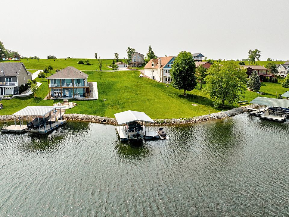 ONE OF A KIND PROPERTIES WITH OPTIONS! Discover stunning lake views from this spectacular location at Sun Valley! An on-water lot (#806) a main lakefront building lot, featuring electric access for the floating boat life/dock, a way to charge the trolly motor and flat lot at the shoreline with dimensions of 73.40 ft frontage and 244.30 ft on one side. Few opportunities like this available where you have a home and can build your on water dream home. This fabulous custom-built lake haven features trapezoidal windows and a spacious concrete driveway leading to a deep garage suitable to hold all the toys and for entertainment. The lush landscaping guides you to a composite deck with a handicap ramp. Inside, enjoy hardwood floors, high ceilings, and a modern kitchen with new appliances. The upper-level master suite boasts a luxurious ensuite and lake views. Geothermal heating and in-floor heating enhance comfort. A must see place!