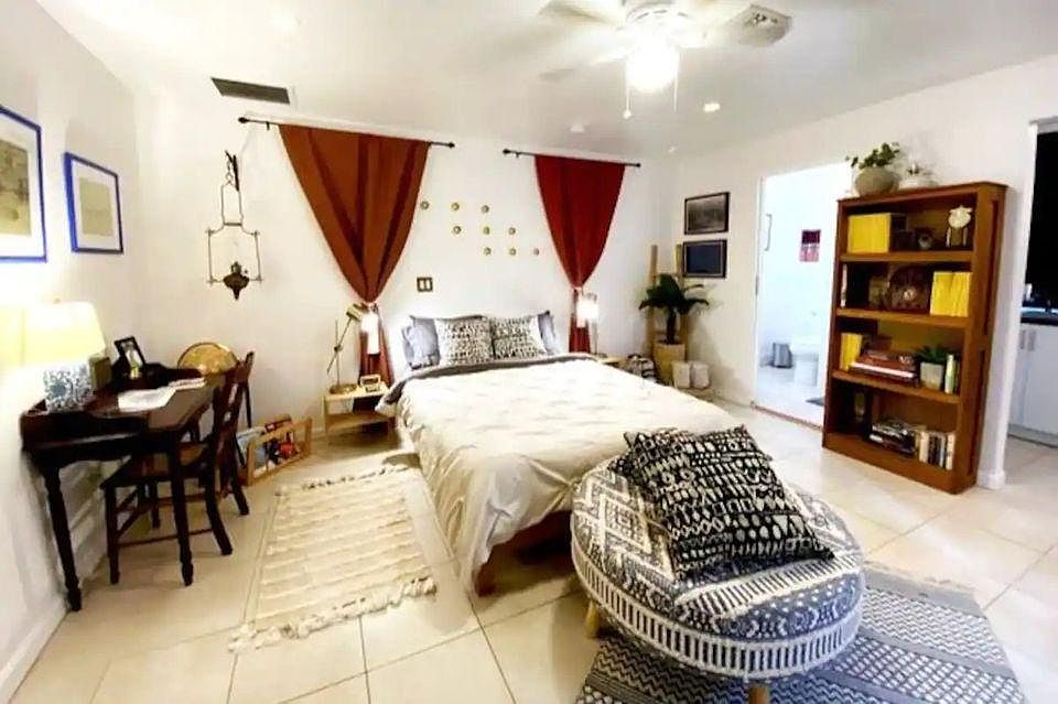 Recently renovated efficiency/bachelor style studio apartment at a historic home in Opa-locka. This is a 350-400 sq. ft. detached space has a kitchenette and bathroom with ample outdoor space to enjoy, including a cozy carport to share with the homeowner. This is currently being used as an Airbnb and is being made available as a long (1-year) or short-term (6-month) rental. The space can be made available furnished or unfurnished - decorations will NOT be included. Separate bathroom with a small tiled shower. The kitchen includes a small refrigerator, microwave, hotplate, and other cookware. A maximum of one parking spot is available. Utilities (water/sewer, trash, electricity, WIFI, AC) are all included. Central AC is shared by the homeowner - separate fans are welcome. No more than one occupant is allowed on the lease and in the space. No pets. The apartment is in a quiet, clean, family-oriented neighborhood of Opa-locka in close proximity to local universities and shopping destinations. Centrally located between MIA and FLL airports, as well as the coastline. Publix in Miami Lakes, Winn-Dixie and 24-Hour Fitness in Miami Gardens, all within a 8-10 minute drive. A first month and deposit in the amount of one month will be required, as well as proof of renter's insurance. Credit and background checks, as well as references, will be required. To make an appointment, please reach out and we'll schedule a time with notice. A laundry facility is not included, but 24-hour laundromats are nearby. Occupancy is immediately available. Utilities are included in the total price. Pets are NOT allowed. Smoking inside is NOT allowed under any circumstances. Guests are welcome - large parties, loud noises, and drugs are NOT. One (1) parking space is included. $25.00 late fee after the fifth of each month. Subletting is prohibited.