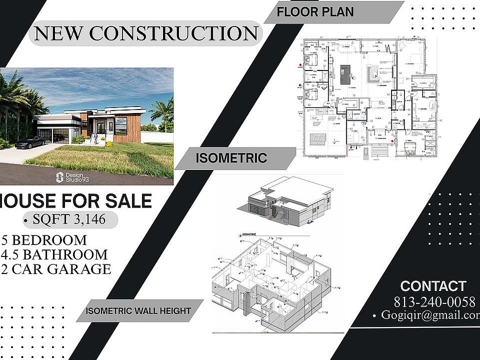 Welcome to this stunning 5-bedroom, 4.5-bathroom CONTEMPORARY home in the highly sought-after Temple Grove Estates of Temple Terrace, FL. Built in 2025, this BRAND-NEW construction spans over 3,146 square feet of thoughtfully designed living space, ready to welcome its first owners. Upon entering, you'll be greeted by gleaming laminated floors that flow seamlessly through the open-concept living, dining, and kitchen areas. The soaring TRAY ceilings, recessed lighting, and oversized windows create a bright and inviting atmosphere filled with natural light. The chef-inspired white kitchen is a true centerpiece, featuring a striking WATERFALL-EDGE island, abundant cabinetry, intricate ceiling details, and a massive walk-in PANTRY for all your storage needs. Sliding glass doors off the dining area open to a private rear patio, offering the perfect space for outdoor relaxation and entertaining. On the main floor, a guest bedroom with its own ensuite bathroom provides privacy and comfort for visitors, while a convenient half bath, a large walk-in closet, and a functional MUDROOM with direct access to the 2-car garage enhance everyday living. The home continues to impress with a spacious loft that opens onto a BALCONY with picturesque views. The primary suite offers a serene retreat, complete with a custom walk-in closet and a luxurious ensuite bathroom.