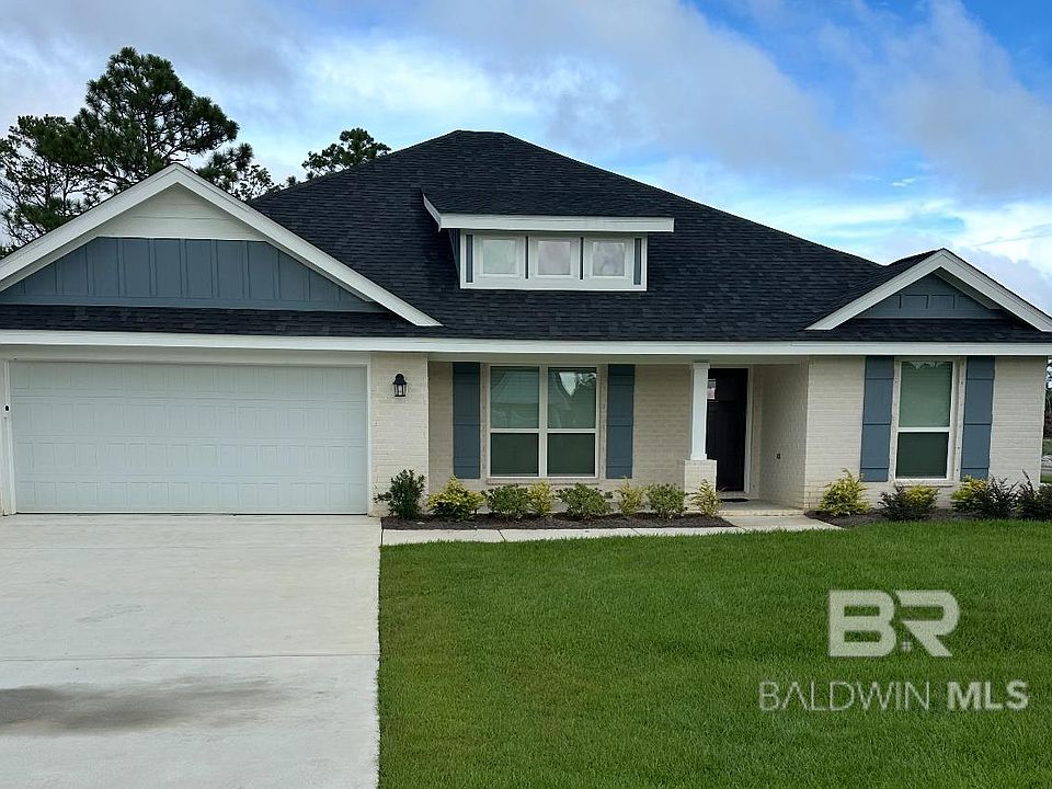 USDA financing available, gold fortified. This 1930 sq ft 4 bed 2 bath split floor plan home is in Briar Rose Subdivision in Bay Minette. Conveniently located near schools, shopping, and local attractions, Briar Rose makes it easy to stay connected to everything you need. The kitchen is an eat-in dining room combo open to the living room, separated by an island. Special features include no active HOA, approximately 1/2 acre homesites. Two car garage, granite throughout, back covered porch great for relaxing or grilling. The kitchen has stunning granite with deep farm sink. The owner suite that has an en-suite double vanity and a separate shower and garden tub, a private water closet and huge walk in closet. 5 1/4' base boards thru-out including in the finished garage. There is a pull down attic stairs leading to a well lit attic. 14" of insulation above the home and reinforcements in the two car garage door. Rated for 160mph winds. Included are the latest light weight storm shields that are predesigned for each window and door on the home. don't miss your chance to secure this home. Seller will pay closing costs with approved lender. Buyer to verify all information during due diligence.