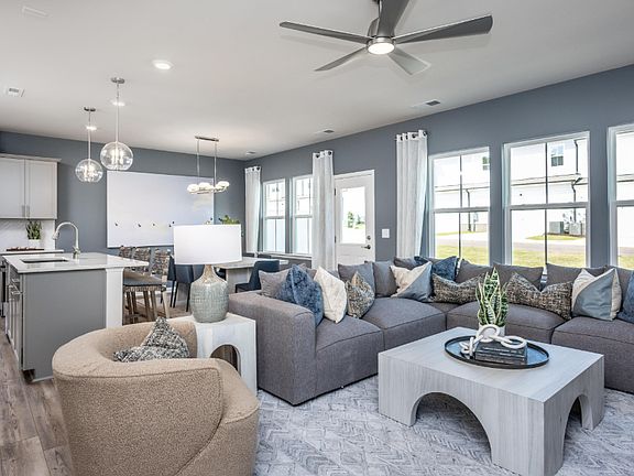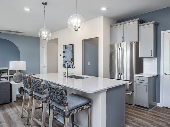 Contemporary kitchenLarge islandAttached two-car garageCommunity amenitiesWalk-in closetEn-suite bathroomGreen spaces