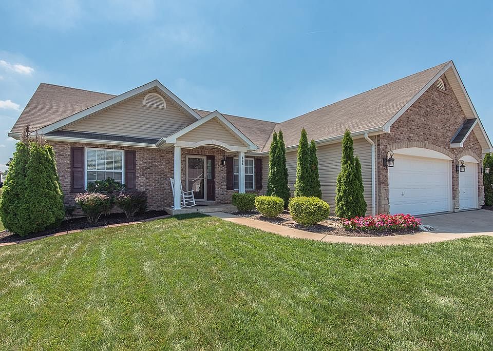 SHOWS LIKE A DISPLAY! Gorgeous 3BR, 2BTH great rm style ranch w/1800+ SF of living space. Amazing curb appeal w/brick & stone front, lush landscaping & 3 car garage. The vaulted entry w/gleaming high-end laminate floors, welcomes you to an open floor plan starting w/the formal dining rm followed by the spacious great rm w/WB fireplace flanked by windows. You'll love the eat-in kitchen w/custom cabinetry, tile backsplash, stylish black appliances, breakfast bar, pantry, breakfast rm w/bay window & door leading to the patio & level, tree lined, backyard, perfect for outdoor entertaining & enjoyment. Luxurious master suite features coffered ceilings, bay window, walk-in closet & deluxe bath w/his & hers vanities, jetted tub & sept. shower. The split BR floor plan offer 2 add'l BR & full BTH. The lookout LL w/rough-in for BTH, is just waiting on your custom finish for added living space. Conveniently located w/easy access to major hwys, great schools, shopping & dinning. A MUST SEE!