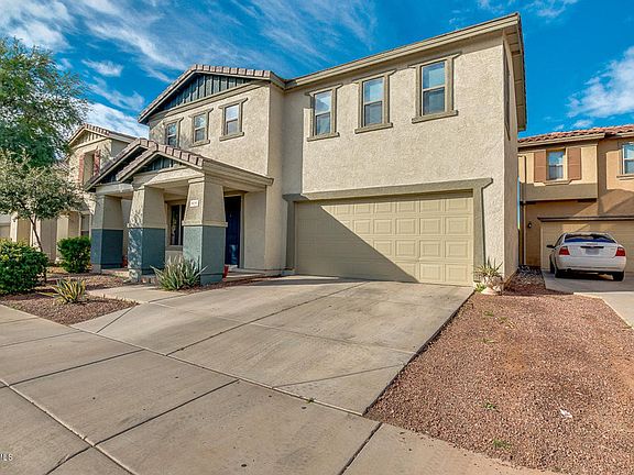 Charming two story home, with lovely front porch perfect for your morning coffee! This home features 4 bed/2.5 bath, formal living & dining room, tile flooring throughout, designer paint, cozy family room, and charming loft perfect for an entertainment area. Gorgeous kitchen includes granite countertops, plenty of cabinetry space, white appliances, pantry, and island with breakfast bar. Beautiful master bedroom with walk-in closet and a full bath with a separate tub/shower & double sinks on custom-made cabinets. Paved backyard is ideal to relax or for nice evening gatherings with friends and family. Additional features include surround sound throughout, in both levels. The Waterford Square community also has biking and walking paths, a large playground, along with community pool and spa.