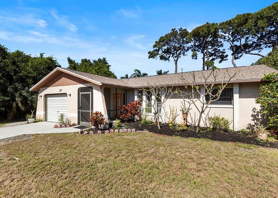 Cute 2 Bedroom 2 Bath home on large Fenced Lot. Nice quiet street in lovely Venice. No HOA or CDD. The important stuff is done. New Roof(2019), New AC (2019), Septic (2013), Water System refurbished, Hot Water tank (2017). All Tile, no carpet, and one car garage. Zoned X, no flood insurance required. Block construction. Decorate and make it yours. Would make a nice rental.