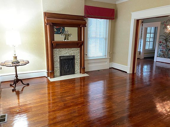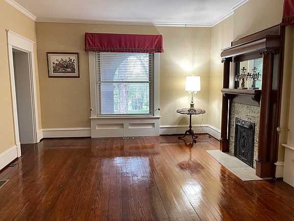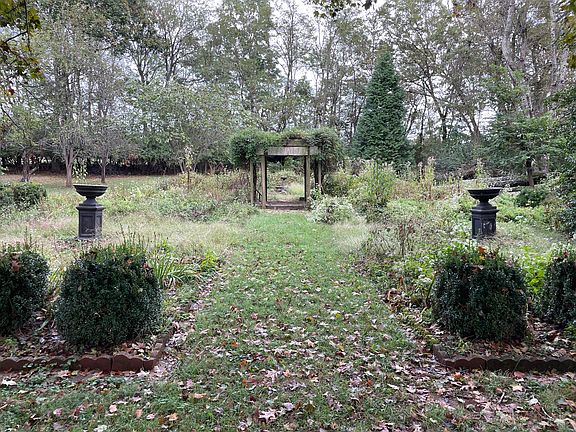 Experience your own private oasis nestled on 4.66 acres, surrounded by mature trees and flower gardens for serene beauty in every season. Inside, this home combines timeless character with comfort, featuring tall ceilings, wide baseboards, picture rails, and stained-glass windows that fill the space with charm and natural light. The formal dining room is a true showpiece, adorned with exquisite hand-painted Zuber wallpaper and dramatic large pocket doors for gracious entertaining. Enjoy modern convenience with washer and dryer hookups on both the main level and the second floor, offering flexibility and ease for everyday living. Come experience the quiet elegance and natural beauty of this one-of-a-kind estate.