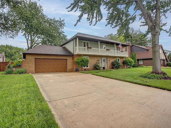 What a fabulous find around the corner from EK grade school in O'fallon. This Lovely Southern style is so charming with its 2nd story balcony that opens into the master and an additional bedroom with updated French doors. The main floor offers newer hard scape flooring throughout from Collins Flooring in 11/22. All newer energy efficient windows and hvac plus a split zone system in master suite. The front living room could make a great office or sitting space plus Large dining room for those Sunday dinners around the table. The family room has fireplace and beamed ceiling. Breakfast area opens to kitchen( appliances stay including frig and freezer in garage) 2 car garage with newer door and opener and tons of built in storage Rear privacy fenced yard with large storage shed that even has built in ramps for the mower. Also space to grill and chill on the rear bricked patio. Windows and doors replaced by Wilke Window and door. HVAC replaced by Belo Ofallon. Meticulously maintained