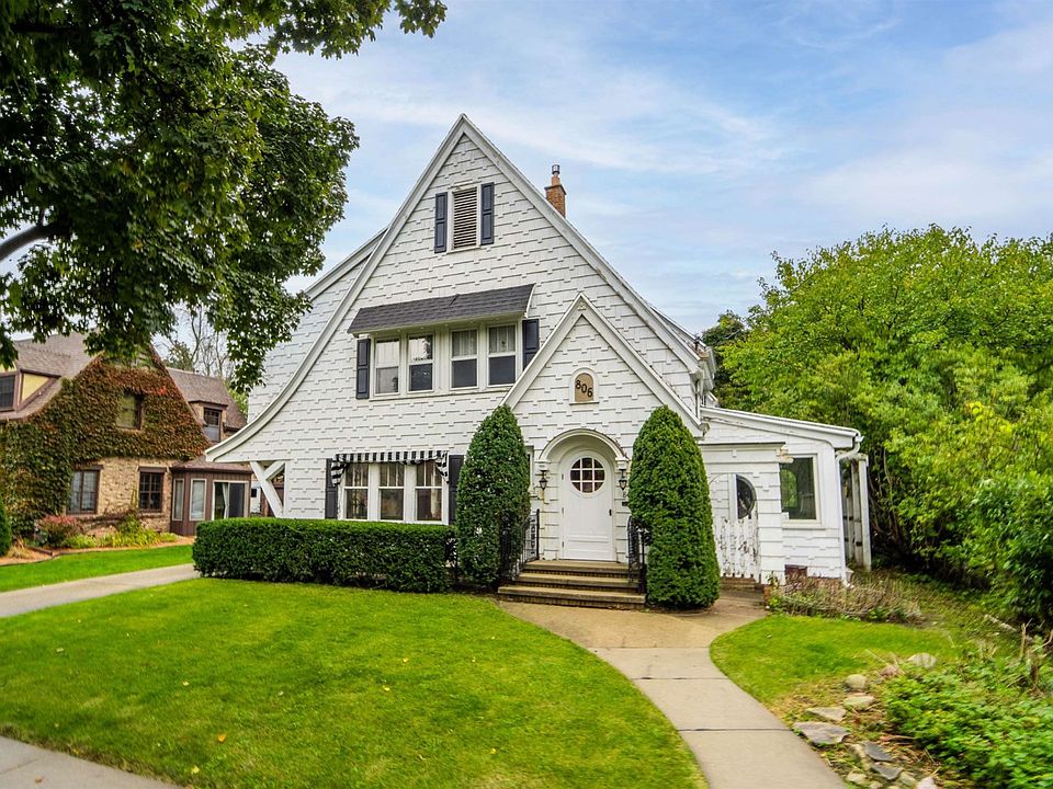 Steps from Pierce park this quaint storybook home uses architecture and landscape to create beautiful curb appeal bursting with personality. A flexible floor plan includes a front LR washed with windows and arched French doors to side covered entry, formal DR with built-in's, custom kitchen addition with an abundance of cabinetry, granite counters, center island, butler's pantry, and adjoining hearth room with gas FP, seasons room, FF laundry, and convenient half bath complete the main level. The upper level consists of three sizeable bdrms with ample closets, a unique full bath setup with dual showers with room to add a second bath! Additional features include: hardwood floors, full basement, 2 car carriage style garage, HUGE 173 ft deep lot. Buy in confidence home offers pre-inspection.