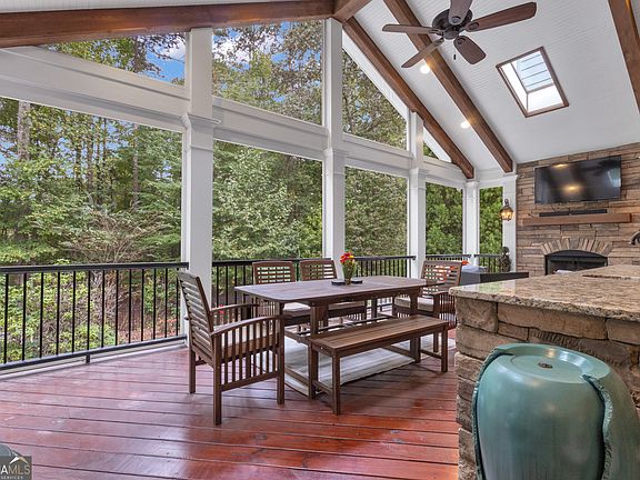 CASUAL ELEGANCE AT ITS FINEST! THIS EXTRAORDINARY BRICK SHOWPLACE, LOCATED IN ONE OF PEACHTREE CITY'S MOST SOUGHT AFTER LAKE COMMUNITIES, IS SURE TO EXCEED ALL OF YOUR EXPECTATIONS! COME FALL IN LOVE WITH THIS WONDERFUL OPEN DESIGN, MAJESTIC "BACKYARD OASIS," SPECTACULAR PEBBLE TEC POOL AND AMAZING CRAFTSMAN STYLE PORCH! The captivating southern living curb appeal, sweeping circular driveway, and professionally manicured lawn simply set the stage for this outstanding home, meticulously renovated with all the latest trends and designer touches! Step inside to experience superior quality, rich millwork, beautiful Currey & Company light fixtures and hand finished hardwood floors on the entire first level! This gorgeous open flowing plan includes a dramatic vaulted great room with brick fireplace, lovely dining room for 10-12 guests...perfect for elaborate dinner parties or dining with family and friends, plus a dedicated home office! This lovely French Country kitchen, equipped with creamy white cabinets, real butcher block counters, custom pantry, Dacor professional cooktop, Kitchen Aid double convection ovens, and Bosch dishwasher, is exceptional! There is a spacious sunny breakfast room for casual gatherings, wine/coffee center, and a home management center too! The primary suite is conveniently located on the main level enhanced by a stunning bayed sitting area, "bird's eye" view of the private "backyard resort," door to the porch, and THE MOST INCREDIBLE spa like bath including luxurious Italian marble throughout the ENTIRE bath, top of the line Rohl Plumbing fixtures, and three showerheads! Then step into the custom-built owner's "dream" closet featuring a hidden shoe closet, laundry hamper, and storage with matching Italian marble, as well as a built-in ironing board! NEXT, let's walk outside onto the INCREDIBLE craftsman screen porch, located off the great room & primary suite, featuring an 18' soaring ceiling, skylight windows, full wall stacked stone fireplace plus granite wet bar equipped with icemaker and mini fridge! It is ABSOLUTELY IRRESTIBLE AND IS SIMPLY AN ENTERTAINER'S DREAM COME TRUE...ALL OVERLOOKING THE MAGNIFICENT POOL, SPA, AND CASCADING WATERFALL!! Back inside...take the stairs up to the loft/study area overlooking the great room, complete with built-in bookcases for a mini-library, plus three generous ensuite bedrooms! (One bedroom has a private bath while the other two are adjoined by a Jack and Jill bath) All baths have been beautifully remodeled and could be in a magazine! The finished terrace level is perfect for game day parties or teen/in-law retreat, including a movie room with a third fireplace and wet bar, plus a huge gym or billiard room, and oversized sized guest suite with direct access to another gorgeous bath which even has a heated floor! In addition to a three-car garage on the main level, there is a golf cart garage in the terrace level plus massive unfinished area, ideal for future expansion or storage! WALK RIGHT OUT FROM THE TERRACE LEVEL to your "BACKYARD PARADISE SETTING" complete with a "state of the art" Pebble Tec pool, cascading waterfall, spa, intricate night lighting, and salt system, plus covered flagstone patio! This tranquil tree-lined setting and lush 1+ acre manicured yard make this "paradise" setting completely private for your added enjoyment! JUST RELAX AND LET THE MEMORIES BEGIN! PRIME NORTH PEACHTREE CITY LOCATION WITH EVERYTHING AT YOUR FINGERTIPS INCLUDING AWARD WINNING SCHOOLS, 100 MILES OF CART PATHS, OUTSTANDING GOLF COURSES, UPSCALE RESTUARANTS, AND SHOPPING! QUICK ACCESS TO TRILITH, PEIDMONT HOSPITAL, INTERNATIONAL AIRPORT, ATLANTA AND I-85 TOO! WOW!