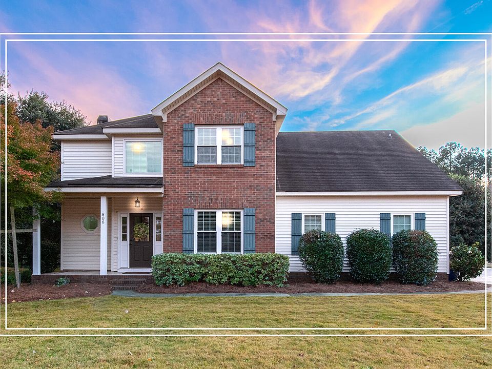 Welcome home to the perfect 3 bed 2.5 bath in Hopeland Farms on level 0.65 acre lot that backs up to riding trails! From the moment you step onto the rocking chair front porch, you'll feel right at home! Inside, gorgeous hardwood floors flow throughout the main living areas, creating a warm and inviting feel! The living room is the heart of the home, featuring a cozy fireplace, ceiling fan, and French doors that open to a bright sunroom with ceramic tile floors - a peaceful spot to enjoy your morning coffee or unwind at the end of the day! Entertain in style in the formal dining room or gather in the kitchen where granite countertops, ample cabinet space, a pantry, and a breakfast area with an upgraded light fixture make everyday living a pleasure! Retreat to the owner's suite, a true haven featuring his-and-her closets and a spa-inspired ensuite bath complete with separate vanities, granite countertops, wood-framed mirrors, upgraded lighting, and a walk-in tiled shower! Two additional spacious bedrooms, each with ceiling fans, share a beautifully appointed hall bath with a framed mirror! A convenient half bath and laundry room adds extra functionality! Step outside to your own backyard paradise! A large deck overlooks the landscaped yard, offering the perfect setting for grilling, entertaining, or simply enjoying nature! This home has it all - style, space, and all the thoughtful details that make everyday feel special! Note storage building does not convey!