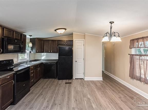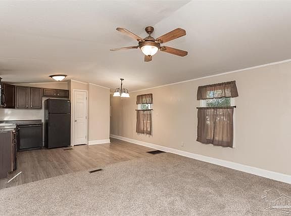 Recently updated 3 bedroom 2 bath mobile home in the much desired Cantonment area, Some of the upgrades include LVP flooring throughout, ceiling fans, modern lighting and beautiful vanities in both bathrooms!! The modernized kitchen includes sleek black appliances, refrigerator, electric stove/oven with built-in microwave and a dishwasher. There is also a pantry for additional storage space.The spacious living room is perfect for relaxing or entertaining. For your convenience there is also an inside laundry room. The 3 bedrooms are all good sized and there are 2 full bathrooms. with There is a $250 Move-in Fee per address and a $50 Lease signing fee per tenant. No Pets Allowed