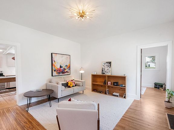 Pretty as a picture! This beautifully restored 1.5-story charmer is vintage character meets modern style in all the best ways. Perfectly perched on a sunny corner lot with lovely landscaping and just minutes from the heart of downtown, this home is full of personality, warmth, and thoughtful updates that make everyday living feel a little more special. From the moment you step inside, the restored original hardwood floors, tall windows, and light-filled layout will make you fall in love. The spacious living room is made for cozy mornings and relaxed evenings, while the open-concept kitchen is the true heart of the home, featuring a walk-in pantry, gorgeous vintage center island, and plenty of space to gather, cook, and connect with family and friends. Two main-floor bedrooms and a beautifully renovated full bathroom offer comfort and ease, while upstairs, a dreamy third bedroom awaits, complete with a large walk-in closet. Outside, the charm continues with a sweet front porch, a fenced-in yard with a private patio for summer hangouts and a great two-stall detached garage for all your parking and storage needs. With a brand new furnace, water heater, electrical, plumbing already in place, all the heavy lifting has been done so you can move right in and start enjoying everything this home has to offer. Call for a private showing and end your home search today! All measurements approximate.