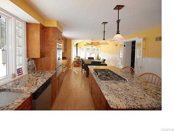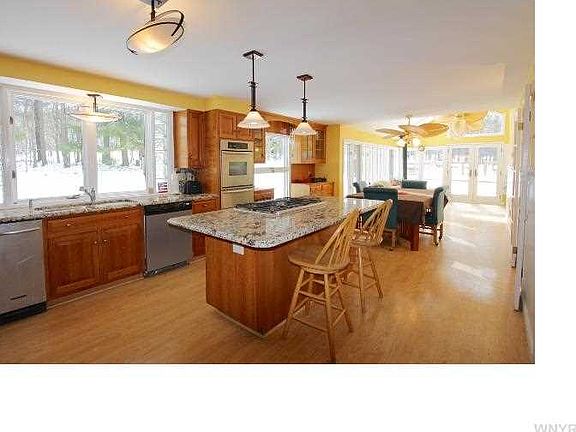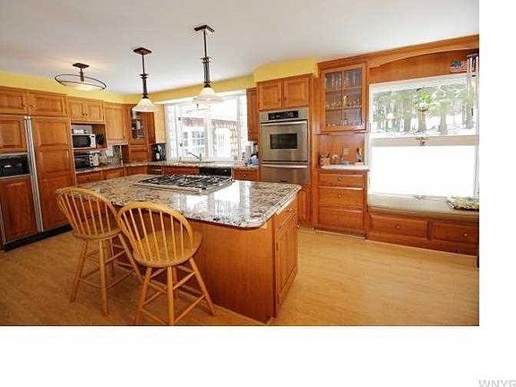This incredible 5 bed 4 bath home is tucked on a 20 acre park like setting lot, just outside of Orchard Park. Gourmet eat in kitchen, granite countertops. high ceiling sunroom with skylight opens up to the large outside deck w/ in-ground gunite pool/pool house. Natural woodwork & hardwood floors thru-out. Along w/ 2 gas fireplaces. large family room has sliding glass doors that open to a private deck that over looks the pond. Large master bedroom w/ master bath suite. Orchard Park schools w Boston town taxes.