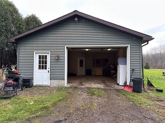 Hard to Find-Wonderful Country Property perfect for Outdoor Enthusiast, Mini Farm or Workshop/garage seeker! Great Open Concept (loft not included in Sq Ft) floor plan wtih 24x32 basement with interior stairs & stairs to outside entrance too. Heat is electric baseboard heat and WDSTV in Great Rm. Attached 2 car side load garage. Beautiful pond, woods, 2 pastures, yards around the home! 30X40 Built 1992 Barn with Hayloft, Tack Rm, Electric, Dirt floors, 4 Stalls +extra space, sliding front & rear doors. 20x40 Outbuilding attached to Barn has cement floors, electric built 1998. Homestead Status reduces total tax $3687 by $235.27. Come take look at this home and be in for Christmas!