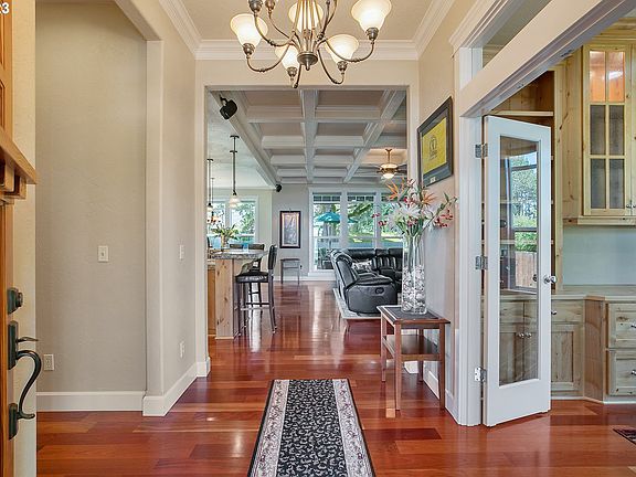 This amazing one level custom built home has been so well taken care of, it looks brand new inside and out. Featuring 9ft ceilings throughout with box trimmed ceilings in the great room, gleaming Brazilian hardwood floors, large pantry and lots of built-in cabinetry. The large Primary suite has a double vanity and a large walk-in closet and shower. A freshly painted exterior shows off the amazing condition of the home. Out the dining room is a covered deck with a gas fireplace which is a great space for entertaining and BBQing. Outside also features a rock front water feature, a large detached 2 car garage/shop with R/V hook-up plus the attached 2 car. Open Saturday 5/13, 12-2pm