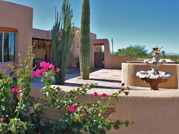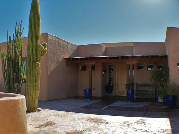 This 1 owner, 3 bedroom 2 full bath home with separate hobby room and an additional den awaits a new family. Open/split floor plan with ceramic tile throughout, large master suite with dual sinks and walk in closet. Master suite has 8 foot tall French doors for easy access to backyard. Don't miss the Custom Knotty Alder front door, large open kitchen with dining area, family room and wood burning fireplace. Amazing sunset views from the backyard and breathtaking scenery of the Sonoran Desert in the front court yard complete with fountain. There is plenty of room to store your RV/toys on this 1.12 acre property with no HOA fees. 8x12 wood shed stays. Additional blown insulation upgrade completed when home was built. Pride of ownership will not disappoint.
