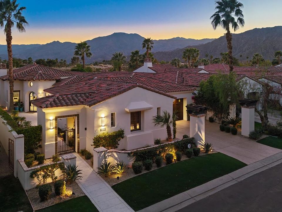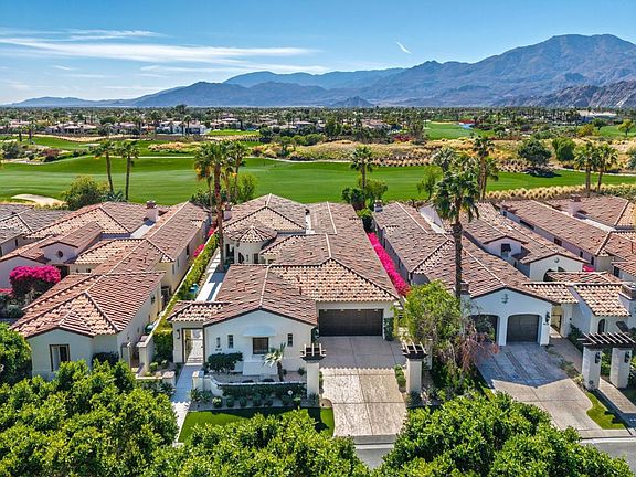 Step into timeless elegance with this meticulously updated south-facing villa, showcasing the largest and most sought-after villa floor plan in the prestigious Hideaway Golf Club. With 3 spacious bedrooms plus a dedicated office, 3.5 spa-inspired bathrooms, and a dramatic rotunda-style entrance, this home blends architectural charm with modern comfort. Every detail of the interior has been thoughtfully crafted--from the custom lighting to the premium finishes and textures throughout. The airy great room flows effortlessly into a stylish bar and a chef's kitchen featuring high-end appliances, custom cabinetry, and elegant stone surfaces--perfect for both entertaining and everyday comfort. The tastefully designed primary suite is the ultimate private sanctuary, featuring a luxurious en-suite bath with an inviting soaking tub, walk-in shower, and dual vanities. Each guest bedroom suite is beautifully appointed and strategically positioned for privacy and relaxation, featuring beautiful tilework and upscale fixtures throughout. Step outside to a tranquil outdoor entertainment area, ideal for dining under the stars, lounging by the pool and spa, or gathering around the fireplace. All this while enjoying panoramic views of the 5th hole of the Clive Clark golf course and the majestic south-facing mountains beyond. This villa is more than a home--it's a statement of style, comfort, and elevated living. Discover the art of desert luxury at The Hideaway.