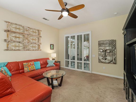 LEAST EXPENSIVE HOME with PRIVATE POOL in the community! Welcome to your SOUTHERN EXPOSURE desert oasis in Sun City Shadow Hills, a vibrant 55+ community! This sought-after Montoya model offers 3 bedrooms and 2 baths, blending comfort and style. The chef's kitchen features slab granite countertops, stainless steel appliances, a breakfast bar, and ample cabinetry. Relax in the primary suite with a spa-like ensuite and walk-in closet. Plantation shutters, lighted remote controlled ceiling fans offer added style and function, while the blend of tile and lush carpeted flooring offer added comfort. Outside is a private backyard retreat with an extended low maintenance aluma-wood type patio cover. The current owner had a combo beach access / tanning shelf large spool installed; an energy efficient balance between pool and spa lounging. There is also a gas firepit for added warmth and ambiance. The finished garage boasts plenty of built-in cabinets with a workbench area. Sun City Shadow Hills is located in the the lower cost Imperial Irrigation District, with lower power rates. Sun City Shadow Hills' world-class amenities include; Two Clubhouses, Two Bistros and a Restaurant, Tennis and Pickleball, Bocce, 2 Fitness Centers, 1 Indoor and 2 Outdoor Pools/Spas, 2 Dog Parks, a Championship Golf Course, a Challenging 3-Par Course and dozens of Social and Activity Clubs. Golf is extra and affordable. The low HOAs of only $369 monthly includes 24/7 guarded gates, security patrols, common area maintenance, internet and access to all activities, clubs and amenities.