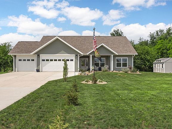 Acreage retreat, where comfort meets style and nature surrounds you! This 3-bedroom, 2-bath ranch offers one-level living with zero-entry access. The expansive kitchen and dining area, are perfect for entertaining. The kitchen boasts Wi-Fi-enabled appliances, a spacious center island, and ample counter space for all your culinary needs. The primary suite features a large walk-in closet with custom shelving, a jetted tub, and a walk-in shower. The great room flows seamlessly into a sunroom where you’ll enjoy views of the pond and the peaceful natural setting.