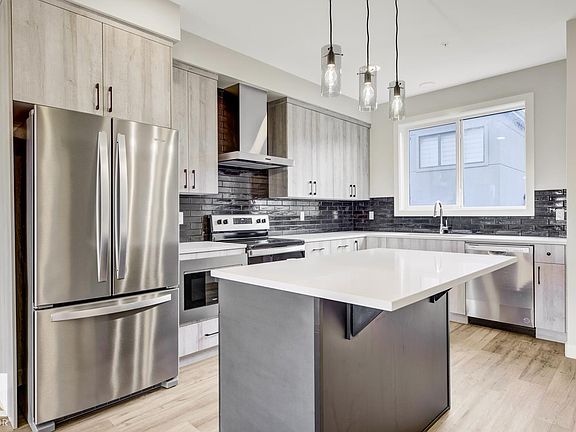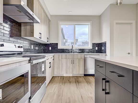Last brand new roof top patio unit with fully contained two bedroom basement suite. Main house is a 3 bedroom 2.5 bath. 9ft basement and main floor ceilings, 50 inch linear fireplace, Large kitchen with prep island, walk in pantry and Stainless appliances. Custom barn door, quartz countertops through out and tiled backsplash. Upper floor laundry, ensuite and walk in closet in the main bedroom. Basement suite is a two bedroom with separate entrance full appliances and in suite laundry, current rents in the area for a suite are at $1600 per month. Builder is willing to help find a tenant to help off set the mortgage payment. Home is geothermally heated and cooled, landscaping, fencing and double garage are included. Close to downtown, NAIT and the LRT expansion. Furniture in home negotiable.