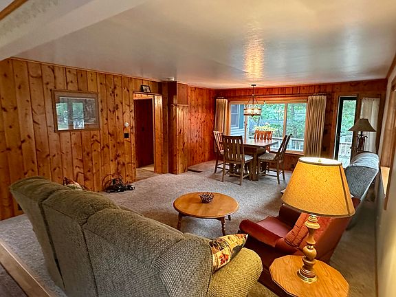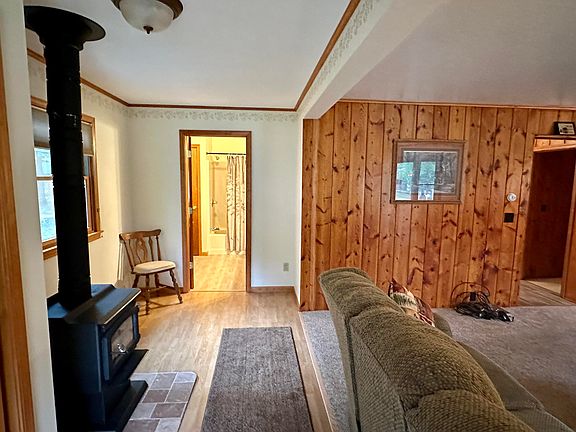 Perfect location for your getaway up north! 2 bedrooms, 2 full bathrooms with a 24x30 garage for the boat, snowmobiles, or side by side! No more trailoring the toys up north, ride from the house to access all of the trails!