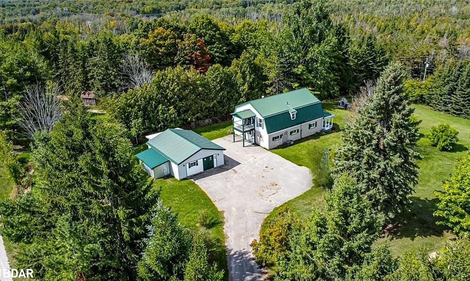 A WELL-LOVED HOME WHERE HAPPY MEMORIES, NEIGHBOURLY WARMTH, & NATURAL BEAUTY THRIVE - SMALL-TOWN CHARM MEETS MODERN COMFORT ON A PEACEFUL 1.25 ACRES! Welcome to a truly well-loved home that radiates warmth and pride of ownership, set on a peaceful 1.25-acre retreat surrounded by mature trees, rolling farmland views, and the soothing sounds of nature. Nestled within a welcoming small-town community where neighbours stop to say hello, you will also enjoy the convenience of being just 10 minutes from Barrie’s amenities, with country roads leading to local farmers markets and seasonal flower stands. From golf courses to Snow Valley Ski Resort and the shores of Kempenfelt Bay, outdoor recreation is always close by, with the Tiffin Conservation Area just across the road featuring trails, wildlife, and year-round natural beauty. The expansive driveway provides abundant parking, while two storage sheds and a detached garage/workshop - insulated, heated, and powered - offer space for every project or hobby. Inside, a sun-filled open layout unites the living, dining, and kitchen areas, showcasing picturesque forest views and a walkout to a covered porch, perfect for relaxing outdoors. Three adaptable rooms on the main level offer flexible space for a home office, library, or media lounge, while the upper level features three spacious bedrooms, including a primary retreat with a private balcony, walk-in closet, and cozy electric fireplace. An upper family room, convenient laundry, and plenty of storage add to the functionality, while full 4-piece baths on both levels ensure everyday comfort. Thoughtfully maintained and filled with happy memories, this inviting property also comes equipped with a 13kw Generac generator, central air, and forced air propane heating. This is more than a house - it’s a place where lifestyle, community, and cherished moments come together to create a one-of-a-kind #HomeToStay.