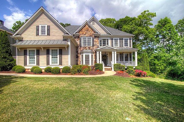 Welcome to Sterling on the Lake offering the active swim tennis fitness club lifestyle you seek in this Flowery Branch neighborhood.Five bedroom four bath with three levels of finished space and unfinished terrace stubbed and ready to be finished.Many family spaces include,living and dining.Cathedral ceiling family with wall of bay windows.Eat-in kitchen with huge center island breakfast bar.Third level features oversized bonus room.Guest bedroom/office and full bath on main.Seasonal views of lake. New Architectural Roof,Custom wrought iron fenced in backyard,Two stone patios in landscaped backyard fresh paint all must haves and more!