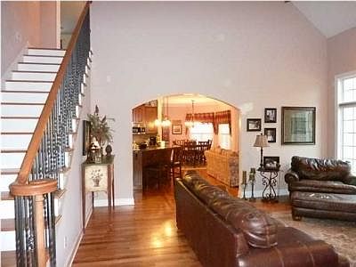 Incredibly well designed floor plan with the best utilization of space in the areas we live. Featuring large kitchen with work/serve island/pennisula open to keeping with fireplace and family room with fireplace - functioning as one enormous room of cozy areas - perfect for everyday living and entertaining. Site finished hardwood floors, generous crowns, neutral decor and three car main level garages are just a few of the amenities offered in this warm and welcoming home on completely level lot on the perimeter backing to deep wooded area. Main level master is privately tucked away outside of the living area and NOT open to the foyer. Convenient to I-75 at Exit 11 and only minutes from Enterprise South, Hamilton Place Mall, Publix Grocery and wide selection of dining. Easy access to downtown, this Ooltewah home offers something for everyone in the family to include the pets with aluminum fencing in rear. Your search is over once you visit 8064 Trout Lily Drive.