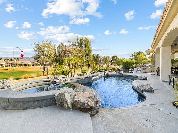 Rented 11/1/25 to 3/31/26. Welcome to your dream retreat in the prestigious Sun City Shadow Hills, a vibrant 55+ community in Indio, California. This stunning 3-bedroom, 2.5-bathroom home is available for seasonal rental and comes turnkey furnished, offering you a seamless transition into resort-style living. Step inside to discover a beautifully appointed interior with an open floor plan that seamlessly blends comfort and elegance. The spacious living area is perfect for entertaining, featuring plush seating and a large flat-screen TV. The gourmet kitchen is a chef's delight, equipped with modern appliances, and ample cabinet space. The master suite is a true sanctuary, boasting a luxurious en-suite bathroom with dual vanities and a separate shower. Two additional bedrooms provide plenty of space for guests. Outside, enjoy the serene golf course from your backyard, ideal for morning coffee or evening cocktails. Enjoy the private pool, spa, BBQ and fire pit all outside your door. As a resident of Sun City Shadow Hills, you'll have access to world-class amenities, including golf courses, swimming pools, fitness centers, and a bustling clubhouse with a variety of social activities. Located near popular attractions, shopping, and dining options, this home offers the perfect blend of relaxation and convenience. Nearby, you'll find the Shadow Hills Golf Club and Shadow's restaurant. Available now through April 8th. Rented 11/1/25 to 3/31/26.