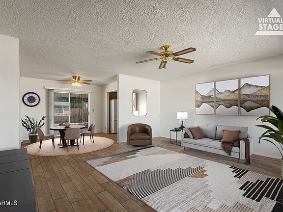 Located in the golf course community of Sunland Village East, this Model 130 home offers 2 bedrooms, 2 baths, and 1,265 sqft of well-maintained living space. Recent updates include a new roof (2023), new AC (2022), and new flooring throughout (2023). The home features a 2-car garage, a full block wall, and a spacious backyard with a large shade tree. Bring your creativity and make this home your own. Community amenities include golf, pickleball, tennis, fitness center, pools, spa, hobby rooms, and a variety of clubs and activities.