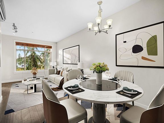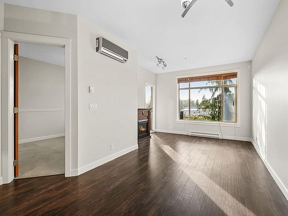 Best value around! Welcome to Yorkson Parkside 1 in the heart of Willoughby! You'll love this bright 2 bedroom plus den (2nd bedroom has a door, closet, vent no window). You get...stainless steel appliances, air conditioning, in suite laundry and a private West exposed fully enclosable solarium/balcony overlooking tennis court, greenspace and beautiful sunset views. Primary bedroom has a walk-through closet and wall safe. 5 piece bathroom with dual vanities, granite counters, soaker tub, walk-in shower, and heated tile floor. Upgraded laminate plank flooring. Living and dining room open to the kitchen with gas-burner stove, granite counters and eating bar. 2 side-by-side parking spaces PLUS 2 storage lockers with power & room for a motor cycle/E-bikes. Quick possession possible. Call now!