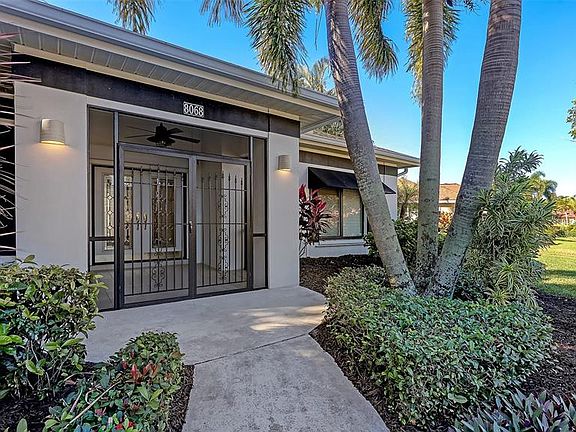 Beautifully maintained 3-bedroom, 3-bath pool home located in the quiet Palm-Aire community. Enjoy sunsets and peaceful lake view from the expansive screened lanai featuring a heated in-ground pool and generous outdoor entertaining space. Lush tropical landscaping enhances the property’s curb appeal. The spacious primary suite includes water views, two walk-in closets, and an ensuite bath with dual vanities, a separate shower and tub. Additional highlights include multiple walk-in closets, abundant storage, an indoor laundry room, impact windows, and hurricane shutters. Conveniently Located just 4 miles from shopping, dining, and entertainment at University Town Center, and only 0.3 miles from Conservatory Park with its lake, walking trails, picnic areas, and playground. This home combines tranquility with convenience—ideal for anyone seeking a serene retreat with easy access to Sarasota's best amenities.