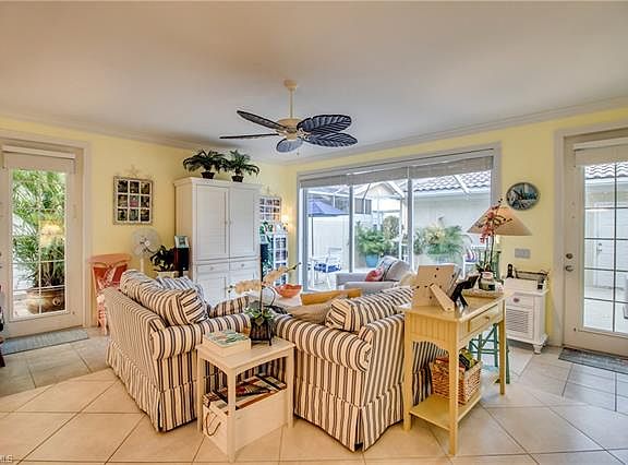 Impeccable 4 bedroom 3 bath house in the luxurious and captivating community of Verona Walk Naples. Landscaped yards that you never have to deal with keep the area feeling tropical and inviting. Extra Florida sunshine pours into this home because of the glass entrance and pool doors that were upgraded. This spotless pool home has been updated with crown molding and tile throughout the entire downstairs living space and bedroom. Make your way up the steps and enjoy wood floors throughout the upstairs bedrooms. In the mornings sit out on your second floor balcony looking out over the water and listening to the birds while sipping your warm cup of coffee. This home was built by the famous and trusted Divosta builder. The poured concrete walls help with sound, stability, security and energy efficiency. Enjoy the resort style community center without any extra or mandatory fees HOA fees. All included: Basketball, Har-Tru Tennis Courts, Bocce, Pickle Ball, Playground, Lakes to Fish and Kayak in, Lap Pool, Resort Pool, Restaurant, Salon, Gas Station, Car Wash, Community Center, Full times Activity Director and more.
