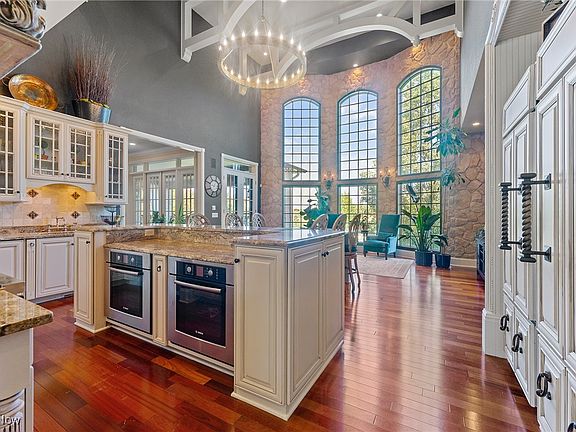 Inside, grand formal spaces unfold with effortless elegance. Soaring ceilings, intricate millwork, and lavish finishes define each room, creating an atmosphere both inviting and majestic. The gourmet chef’s kitchen is a showpiece of design—anchored by soaring ceilings, custom cabinetry, and professional-grade appliances—flowing seamlessly into the living room and dining areas for effortless entertaining.