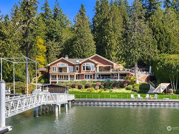 Waterfront luxury living at its finest! Meticulously cared for home set on 1.3 acres with 196 feet of pristine shoreline. The deep water dock accommodates a 42' vessel; includes a 20' party barge and boat lift with 42,000-pound capacity. Enjoy seamless indoor/outdoor living as folding glass doors open the great room, primary suite and media room to multi-level Ipe decks. The lower level features a recreation room, wine cellar, gym, sauna, ensuite guest bedroom and 3rd bedroom - all with deck access. Vaulted ceilings, skylights, heated Jerusalem Limestone floors, a study, elevator, 444s/f private guest cottage, 3 car garage, enchanting gardens; lawn, waterside deck and 70 kilowatt generator complete this unparalleled Port Madison gem.