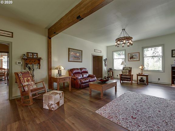 Beautifully Updated Farmhouse w/High End Finishes on over 10 acres! Main level offers Office~Bedroom~ FullBth, Living/Great Rooms w/soaring ceilings~New Luxury Vinyl Plank Flooring~New Paint and Light Fixtures. Master is HUGE w/Ensuite, Sauna & Soak Tub. Two Add. large Rooms & Fam Hall Bth. Relax in the SunRoom on the back porch, watch your horses graze. Shop is 2300 Sq Ft w/concrete & gravel floor, 3 Stall Barn w/insulated tack room & a Detached 572 Sg ft outbuilding.